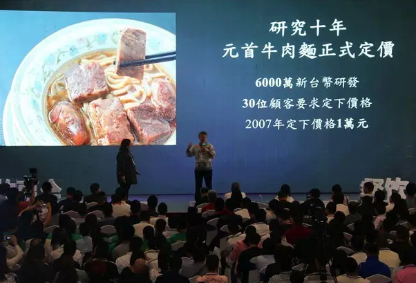 世界第一的牛肉面叫“元首”牛肉面,售價(jià)1萬(wàn)臺(tái)幣(約人民幣2000元),價(jià)格不是牛爸爸自己定的。菜單中“元首牛肉面”的價(jià)格是空白的,客人嘗了之后告訴牛爸爸這碗面值多少錢(qián),有人說(shuō)500,有人說(shuō)6000,有人說(shuō)8000,有人說(shuō)1萬(wàn)2…..經(jīng)營(yíng)一段時(shí)間之后,有超過(guò)30位客人告訴牛爸爸這碗面的定價(jià)在1萬(wàn)元(臺(tái)幣),這碗面的價(jià)格才最終定下來(lái),這么多年下來(lái),賣(mài)的都是回頭客。