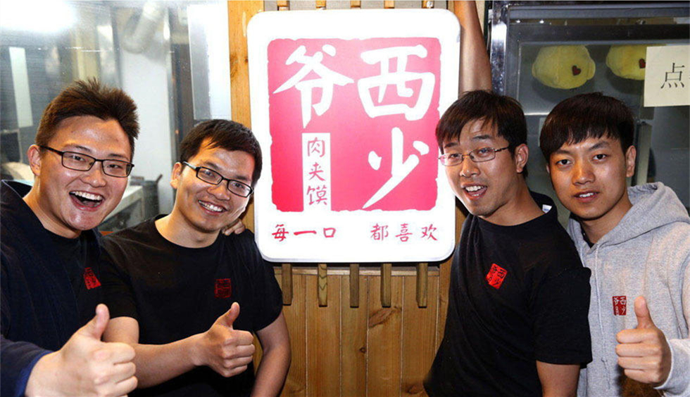 2014年4月,北京五道口,孟兵參與的小店賣出了他們的第一個肉夾饃。兩年后,在距離這家店15公里的望京SOHO,他們開了一家100多平方米的“西少爺”肉夾饃旗艦店,這是他們上市企業(yè)的13家分店之一。