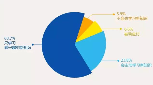 1063.7%的 90后青年會(huì)愿意學(xué)習(xí)自己感興趣的知識(shí),23.8%會(huì)主動(dòng)學(xué)習(xí)所有新知識(shí)。