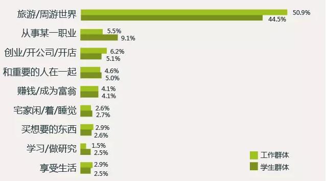 90后最渴望的事情是旅行,其中旅行愿望最為迫切的是工作中的90后,達(dá)50.9%,學(xué)生群體外出旅行的愿望為44.5% “世界這么大,我想去看看”,90后出行不講究吃、住,更在意能夠深入了解當(dāng)?shù)厣?,增加?jiàn)識(shí)和體驗(yàn)。近年來(lái),窮游、驢行受到90后的追捧。