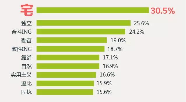 330.5%的90后認(rèn)為自己很宅,62%的90后最喜歡的休閑娛樂(lè)方式為宅在家里上網(wǎng),位列90后自我評(píng)價(jià)中前三的還有獨(dú)立和奮斗。