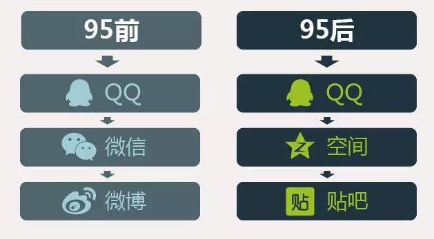 195后基本不用微信,98%的微信用戶(hù)是都是成年人;而QQ社群中,10-29歲的用戶(hù)占比達(dá)到80%。