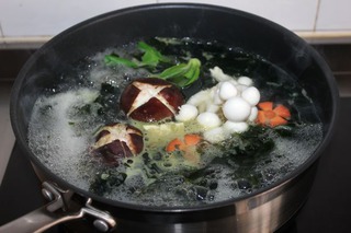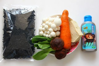 裙帶菜 (適量) 、白蘑菇 (適量) 、胡蘿卜 (適量) 、油菜 (適量) 、香菇 (適量) 、豆腐 (適量)