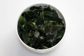 3、基本上幾分鐘裙帶菜就會(huì)泡發(fā)好膨脹到很大。