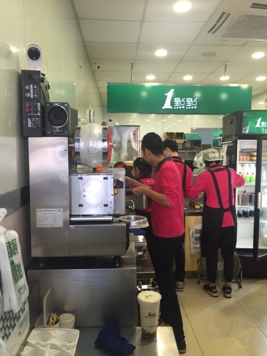 1點(diǎn)點(diǎn)奶茶在門店設(shè)計(jì)上大有學(xué)問(wèn),不像傳統(tǒng)臺(tái)式奶茶店的吧臺(tái)所有工具設(shè)備都在一條線上的“一字型”設(shè)計(jì),為求降低做單速度,1點(diǎn)點(diǎn)的吧臺(tái)設(shè)計(jì)為L(zhǎng)型或者U型,并且將操作流程所需要的工具設(shè)備分散,忙碌起來(lái)較為不便,經(jīng)常要走來(lái)走去,自然降低了效率,但又不會(huì)讓消費(fèi)者覺(jué)得服務(wù)有怠慢的地方。