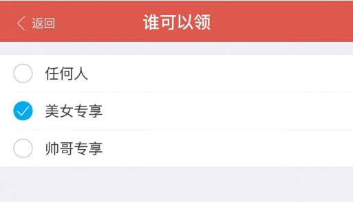 男女紅包是支付寶紅包的又一亮點玩法。用戶在支付寶群里發(fā)送群紅包的時候,可以設置所有人可領、女生可領、男生可領,讓群紅包變的更加有趣。支付寶群紅包也支持同步到支付寶生活圈,生活圈用戶看到后就可領取。有微博網友調侃說,以后紅包都有性別了。
