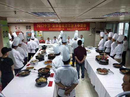 2017年10月27日,金秋送爽,佳果飄香,在這喜慶祥和的日子里,由深圳市飲食服務(wù)行業(yè)協(xié)會、湖南省餐飲行業(yè)協(xié)會聯(lián)合主辦;深圳市飲食服務(wù)職業(yè)技能鑒定所、深飲協(xié)湘菜名廚專業(yè)委員會、樂湘匯飲食集團承辦的首屆“湘菜廚王爭霸賽”于深圳市飲食服務(wù)職業(yè)技能鑒定所上演巔峰對決。
