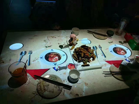 在石代的樣板店里,大多顧客不是忙著拍餐品,秀自拍,而是在站上了椅子彎曲著身子,拍一拍這一臺(tái)可以帶來(lái)無(wú)限體驗(yàn)的桌子。便捷的手勢(shì)點(diǎn)餐,炫酷的游戲場(chǎng)景,再加上烘托智能科技氛圍的燈光,餐飲功能與智能科技的高度融合,讓餐廳看起來(lái)很“帶感”!