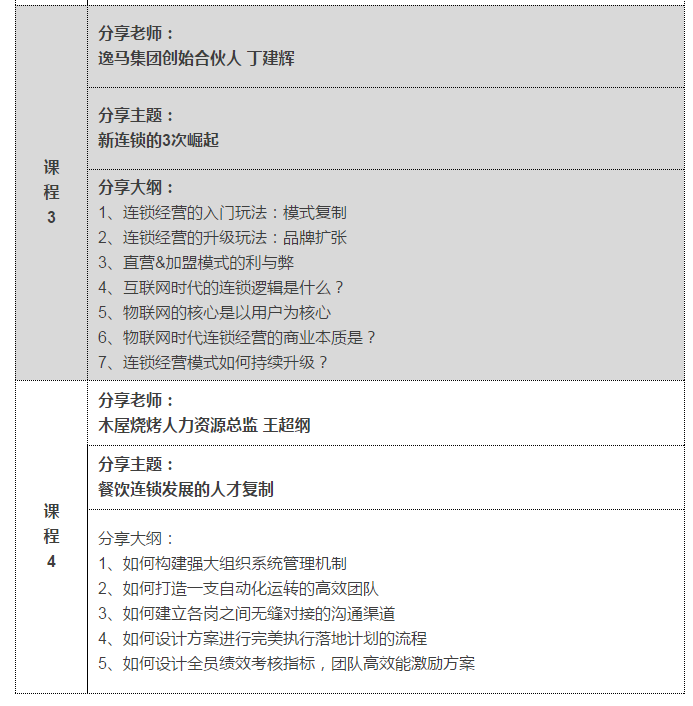 本期創(chuàng)新?tīng)I(yíng)將邀請(qǐng)4位在品牌塑造和連鎖經(jīng)營(yíng)上頗有心得的業(yè)內(nèi)人士參與,從餐飲品牌規(guī)劃、餐飲品牌造勢(shì)、連鎖體系、連鎖餐飲品牌經(jīng)營(yíng)之道等角度,全面覆蓋連鎖營(yíng)銷(xiāo)關(guān)鍵點(diǎn)。
